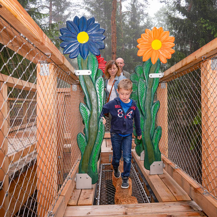 🌲 Marche au-dessus des cimes grâce à un sentier long de 425 mètres qui te plonge au cœur des forêts des Vosges du Nord