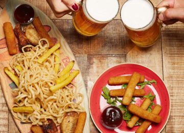 - Cerveza, copa de vino, refresco o agua