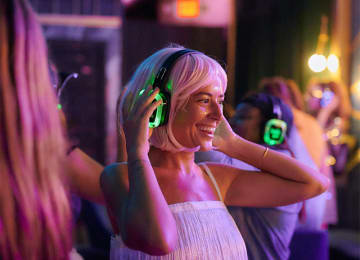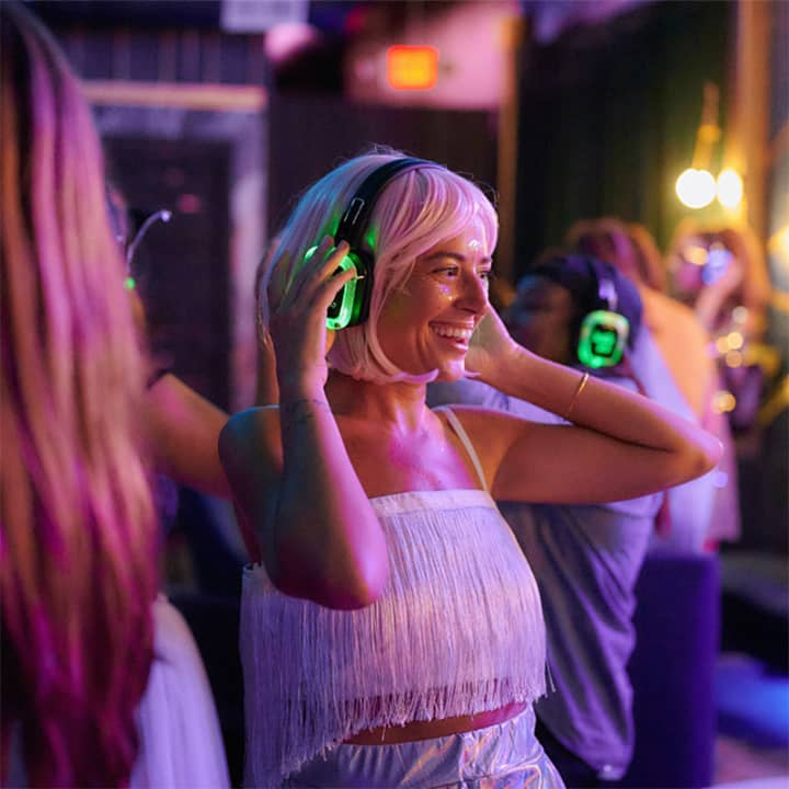 🎧 Wireless headphones with two music channels, letting you switch between DJs and choose your vibe