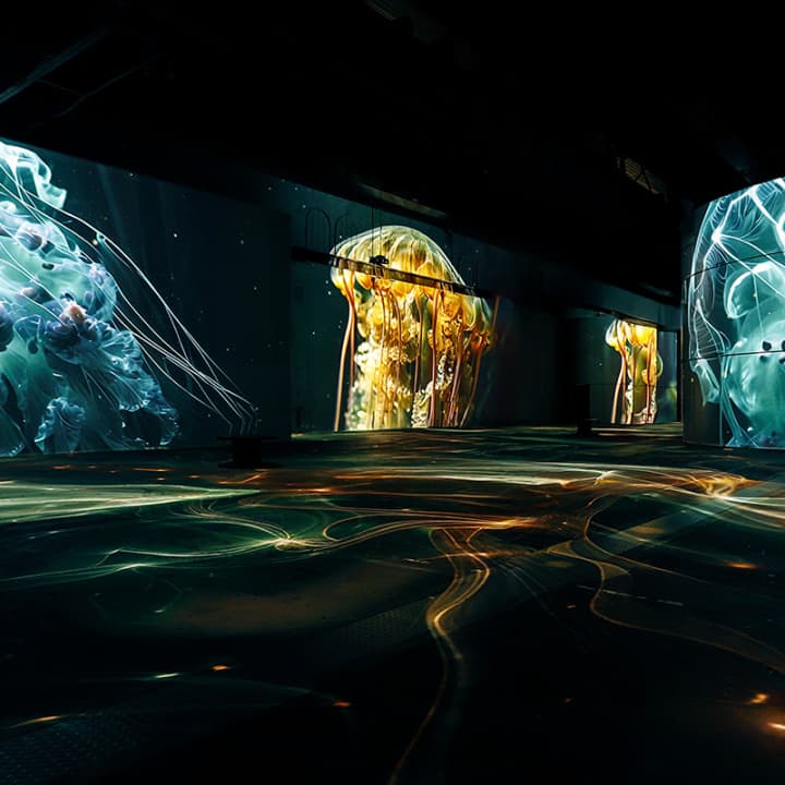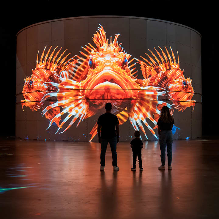 Tauche im Port des Lumières in eine spektakuläre Unterwasserwelt ein. Delfine ziehen an dir vorbei, Korallen leuchten in intensiven Farben, während Haie und gigantische Wale in monumentaler Größe durch den Raum gleiten. Zwischen Staunen und Gänsehaut wird auch die Verletzlichkeit der Ozeane spürbar. In Kooperation mit Plastic Fischer | Prevent Ocean Pollution for Environmental Impact kannst du aktiv dazu beitragen, Plastik aus Flüssen zu entfernen und die Meere zu schützen. Ein faszinierendes Erlebnis für die ganze Familie. Sichere dir jetzt deine Tickets!