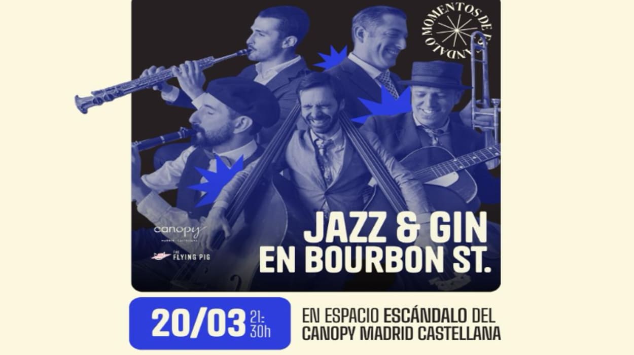 JAZZ & GIN en Bourbon St. es una noche de música en vivo, coctelería con carácter y sabores del sur en Canopy Madrid Castellana, dentro de la serie “Momentos de Escándalo”