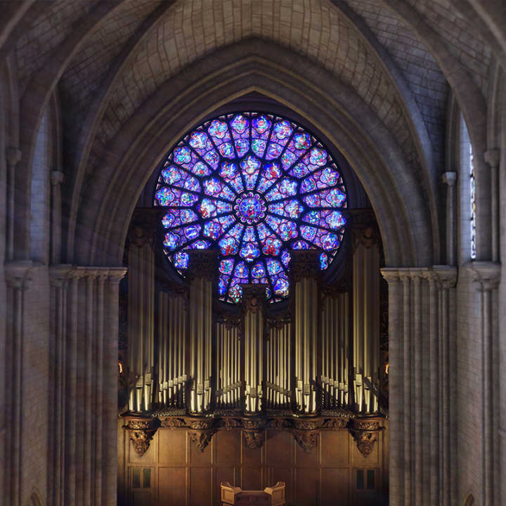 🔔 Aproxime-se dos vitrais, dos sinos e do grande órgão com seus 8 mil tubos restaurados após o incêndio