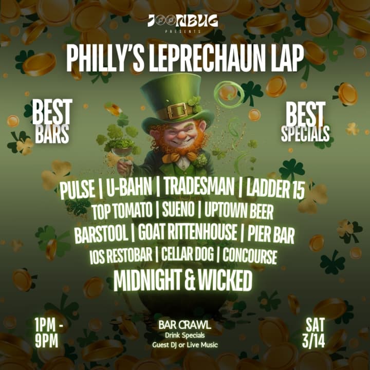 Philly goes all out for St. Patrick’s Day with the Leprechaun Lap, a high-energy bar crawl packed with shamrocks, drink specials, and festive fun. Check in at Cellar Dog to grab your wristband, beads, and surprises, then enjoy VIP access with no cover at participating bars across the city. From afternoon to night, celebrate with exclusive specials and nonstop craic. Get your tickets for Philadelphia St. Patrick’s Leprechaun Lap in Philadelphia now!