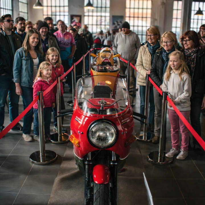Visita guiada de una hora a nuestro showroom de 5000 m2 con autos y motos y conoce la historia y el patrimonio del motor. Tu plan familiar ideal y por supuesto para todos los entusiastas del motor.