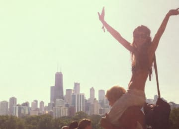 House music, lakeside. Sun overhead, Lake Michigan just steps away.