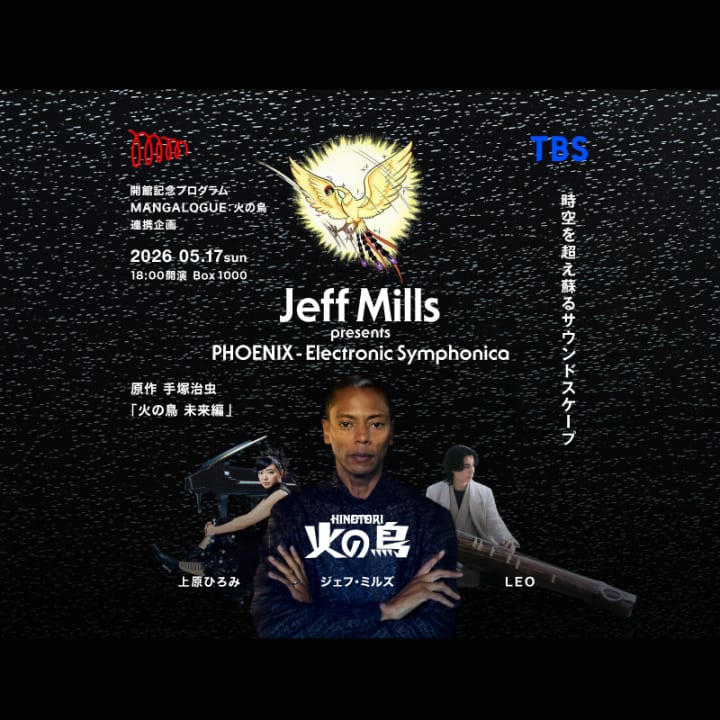 ⭐ Jeff Mills’ Vision of the Future of "HINOTORI" A one-night-only musical live performance by Jeff Mills, inspired by Osamu Tezuka’s "HINOTORI (Phoenix): Future." In collaboration with pianist Hiromi Uehara and Koto player LEO, the epic tale of HINOTORI is woven through music.