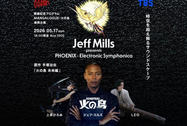 A one-night-only, completely original performance produced by Jeff Mills, inspired by Osamu Tezuka’s "HINOTORI (Phoenix): Future." Centered on the themes of eternal life and reincarnation, the story of HINOTORI is performed through grand music. Through the collaboration with pianist Hiromi Uehara and Koto player LEO, electronics, piano, and traditional instruments intersect to depict the original work’s universal message as a new musical narrative for the modern age. Don't miss this special live performance!
