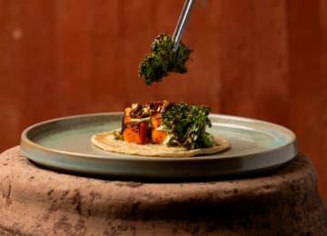 - Un taco al pastor de secreto ibérico con salsa de tomate verde, chipotle y jardín de piña