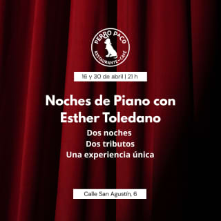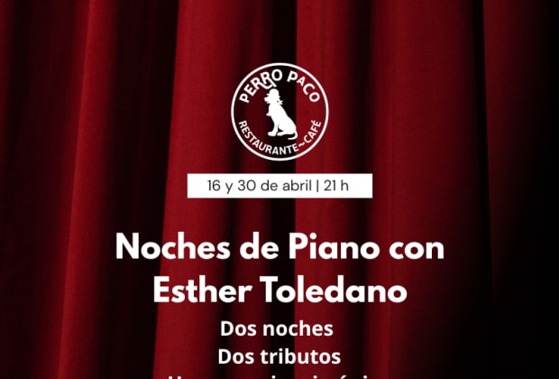 Dos tributos, dos noches inolvidables. Este abril, la sala Clandestino de Perro Paco se llena de emoción con Esther Toledano al piano, en un ciclo especial donde cada jueves propone un universo musical distinto, reinterpretado con sensibilidad, fuerza y elegancia. Una experiencia íntima en la que el piano se convierte en protagonista absoluto y transforma grandes repertorios en versiones cercanas, intensas y llenas de matices. ¡Consigue tus entradas para Noches de Piano con Esther Toledano en Sala Clandestino Perro Paco, Madrid!