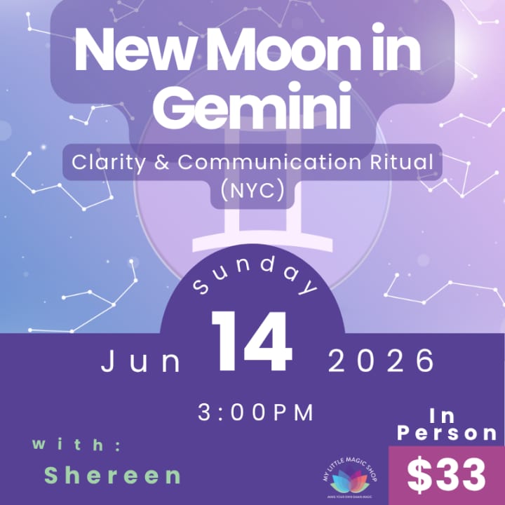 The New Moon in Gemini is the ultimate cosmic invitation to think differently and ask better questions. In this 90-minute in-person workshop, expert astrologer Shereen helps you harness the flexible and curious energy of the twins to clear mental clutter and articulate your deepest desires. Held in the cozy, intimate setting of the Positivity Pavilion at My Little Magic Shop, the experience blends professional astrological insights with a hands-on intention-setting ritual focused on communication, networking, and inspired ideas. Whether you’re a writer looking for a breakthrough, a creative seeking a fresh spark, or a "Magic Maker" wanting to shift your mindset, this beginner-friendly circle provides the tools and community support to help you stay curious. Get your tickets for the New Moon in Gemini Astro Workshop in NYC!