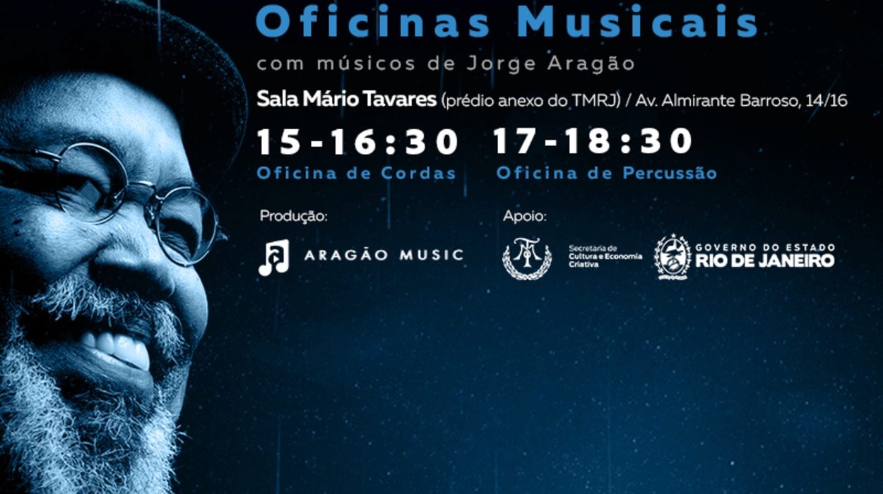 No dia 14 de Abril, o grupo Aragão Music irá realizar duas oficinas musicais na Sala Mário Tavares, voltadas ao grande público e profissionais da área. Das 15h às 16h30, acontece uma oficina de cordas ministrada por Jerominho Fernandes, Leandro Saramago e Vitor de Souza, e a oficina de percussão acontece das 17h até as 18h30, realizada por Junior Moraes, Diego Delavega, Neném Chama e Leonardo Balanço.