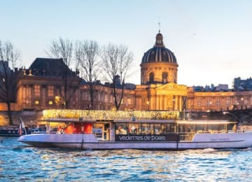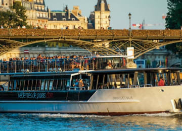 Paris, the city of lights and love, is brimming with art, culture, and history. Discover it from a fresh perspective aboard a Seine river cruise with a glass of champagne, beer, wine, or a non-alcoholic drink in hand. Marvel at the city's iconic monuments and bridges on this romantic and magical journey. It's the perfect way to relax after exploring the city. Want to learn more about the sights? Use the free Vedettes de Paris mobile app for audio commentary. Get your tickets for Paris : Croisière nocturne sur la Seine avec musique à bord + Appli d'audioguide!