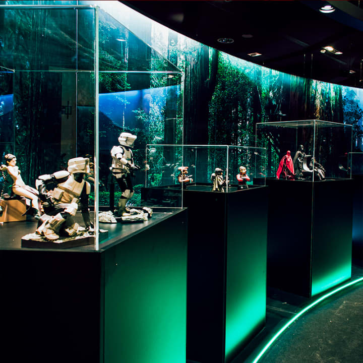 ⭐ El Imperio Fan Contraataca es una exposición que presenta más de 600 objetos oficiales de la famosa saga, coleccionados por los fans y expuestos para ellos. Sumérgete en una galaxia muy, muy lejana y descubre fotos, carteles, disfraces, figuras y modelos de diferentes tipos y tamaños.
