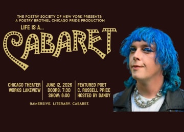 Come blow your horn and start celebrating—your table’s waiting! This June, The Poetry Brothel Chicago invites you to "LIFE IS A CABARET," a special Pride Production dedicated to the sunshine and salaciousness of "Summertime Chi." Immerse yourself in a world where every dance and poem feels like a secret whispered just for you. Alongside our resident cast, enjoy performances from acclaimed Guest Poet C. Russell Price and our Guest Host, the TikTok sensation Dandy. While we navigate the challenges of the world, we pause to embrace a poetic peace and the unchallenged right for every creature to thrive. Stick around after the main stage performances for private one-on-one readings to complete your night of literary enchantment.