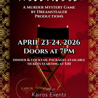 Step into the glitz and glamour of Hollywood where not everything is as perfect as it seems in this immersive murder mystery. Guests become part of the story by questioning suspects and navigating a web of secrets and deception as motives surface. Enhance the evening with curated dinner and cocktail packages available for purchase while piecing together the final reveal. Get your tickets for Hollywood Murder Mystery Game Immersive Dinner now!