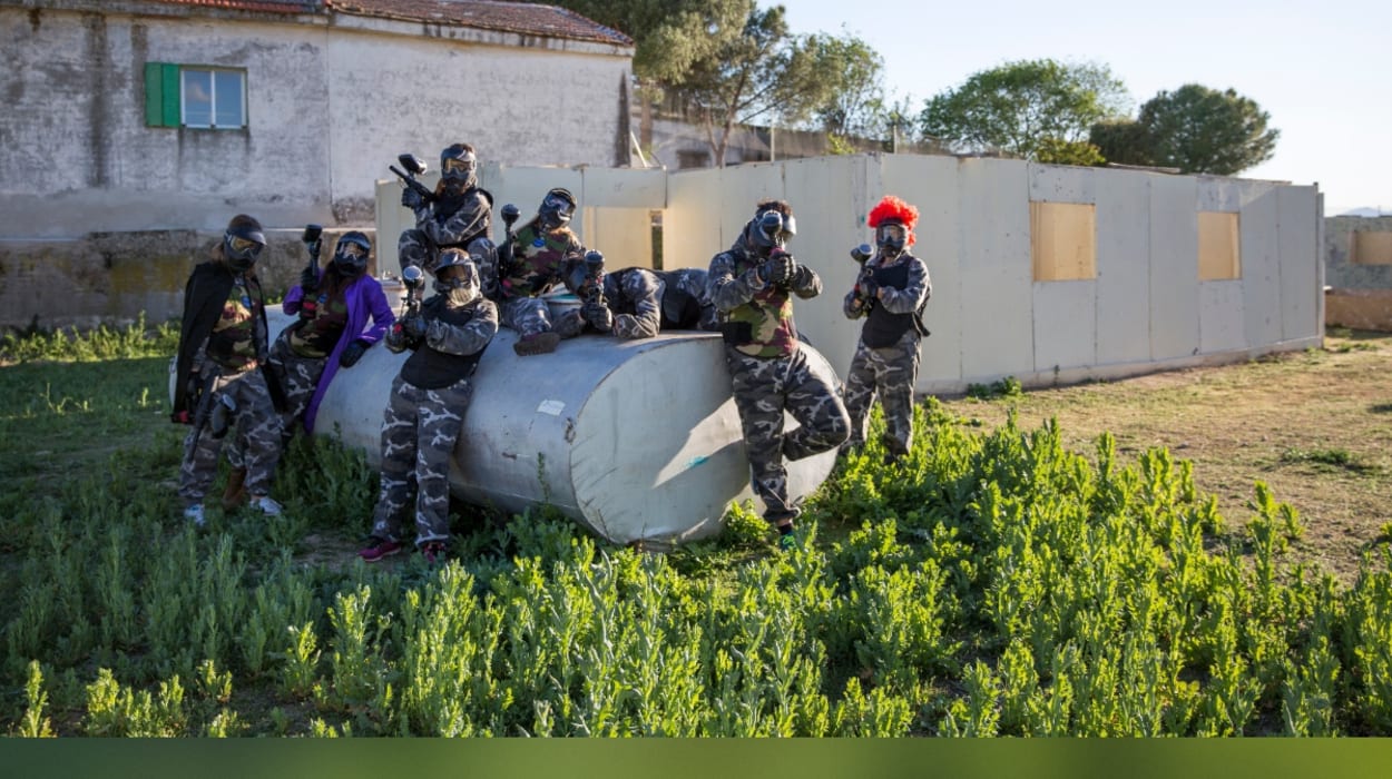 Experience an exciting outdoor paintball adventure just outside Madrid. Perfect for groups of friends, birthdays, bachelor parties, team building events and families looking for action. Enjoy multiple themed battlefields, professional equipment, safety briefing, game instructor, and unforgettable adrenaline-filled missions in nature. Easy access from Madrid with free parking available.