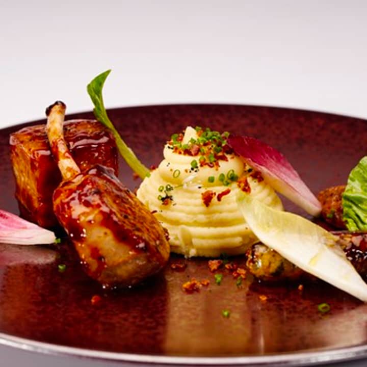 - Lamb - with nori seaweed crust, kohlrabi puree and lemon confit gnocchi