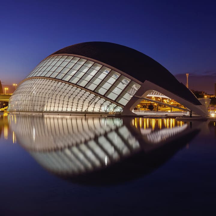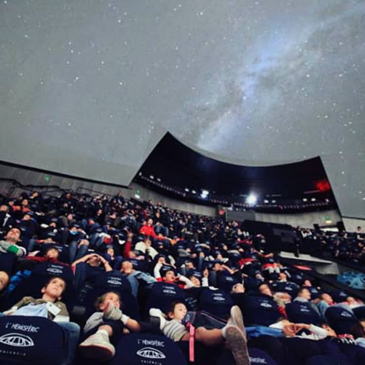 El Hemisfèric es un singular y espectacular edificio, diseñado por Santiago Calatrava, que representa un gran ojo humano, el ojo de la sabiduría. Este elemento simboliza la mirada y observación del mundo que los visitantes descubren a través de sorprendentes proyecciones audiovisuales. ¿Sabes que su sala es la más grande de España? Alberga tres sistemas de proyección en una pantalla cóncava de 900 metros cuadrados, ¿te gustaría verla de cerca? ¡Te esperamos!