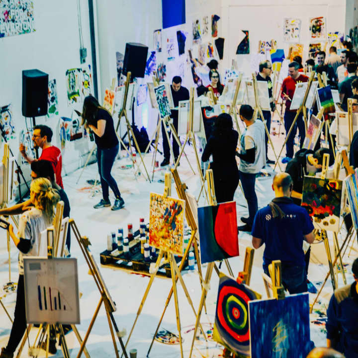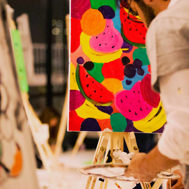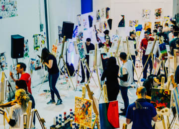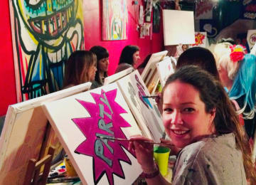 Paint Jam night is a quirky night out in our pop-up art studio. A unique social painting workshop with a bar, a DJ spinning tunes and paints a-flowing. Everyone gets to paint their own canvas to a theme, get creative, mingle and go home with an original artwork. Enjoy a prosecco reception on arrival, intro art exercises on paper, then move onto your own canvas. Later in the evening, try some collaborative painting on the communal canvas too. Let's get creative!