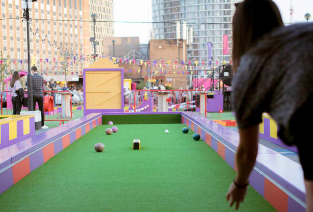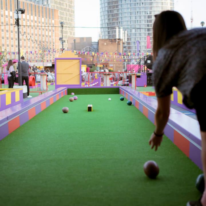 Roof East is reopening its outdoor games and social space! At 30,000 square feet, Roof East is London's largest outdoor adult playground. A vibrant oasis of colour, The East London Bowls Club is traditional bowls with an East London twist. Join us for epic lawn bowl action this summer and compete against your friends to find out who the real baller is. What's more, your Fever ticket includes a cocktail for you and whoever you decide to bring along. Welcome back the good times in a fun and safe way!