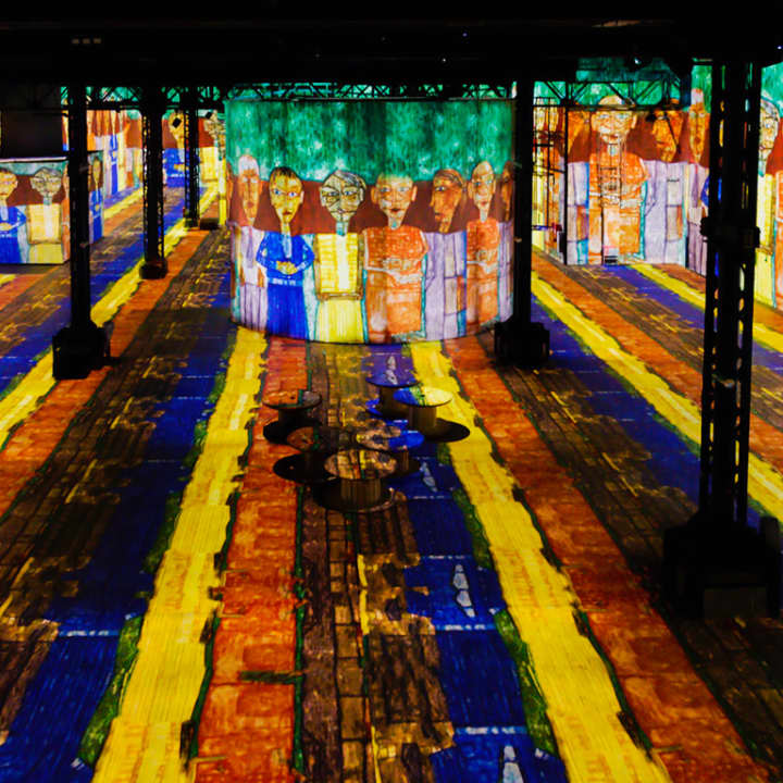 Pour son ouverture, l'Atelier des Lumières présente un parcours immersif autour des représentants majeurs de la scène artistique viennoise, dont Gustav Klimt fait figure de proue. À l’occasion du centenaire de sa disparition, ainsi que celle d’Egon Schiele, leurs œuvres s’animent en musique sur l’espace de projection XXL de l’ancienne fonderie. Hundertwasser est également à l’honneur. Les expositions posent un regard original sur Klimt et ses successeurs à travers la mise en scène des portraits, paysages, nus, couleurs et dorures qui ont révolutionné la peinture viennoise dès la fin du XIXe siècle et pendant le siècle suivant.