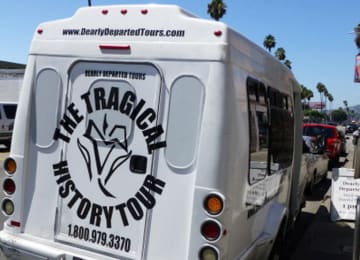 Get ready for the tour that NY Daily News called A Trip Down Bad Memory Lane. You're about to be taken through Los Angeles and the Sunset Strip where your favorite celebrities lived and died. From the restaurant where Sharon Tate had her “Last Supper” to the pay phone in front of The Viper Room used for the River Phoenix 911 call. Michael Jackson, Whitney Houston, John Belushi, Bela Lugosi and The Black Dahlia's deaths will be covered as well as scandals like Chris Brown and Rihanna. You’ll also learn about forgotten stars whose demise is nothing less than spectacular and nothing less than Tragical History. A stop at Westwood Memorial Park has recently been added to visit Marilyn, Hef, Farrah, Truman, Natalie and more. You're going to get within 6 feet of your RIP favorites!