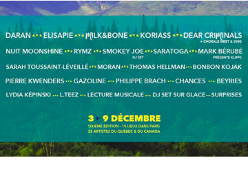 Le Festival Aurores Montréal revient en 2018 du 3 au 9 décembre prochain pour une sixième édition ! Encore aujourd'hui l'unique festival d'artistes canadiens à Paris, Aurores Montréal n'a eu de cesse d'évoluer depuis le succès de sa première édition en 2013 (Ariane Moffatt, Salomé Leclerc, Karim Ouellet, Bernard Adamus, Marie-Pierre Arthur...). 25 artistes du Québec et du Canada à découvrir dans 15 lieux différents de Paris et à ne manquer sous aucun prétexte !