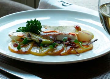 - Merluza a la bilbaina con verduras a la brasa