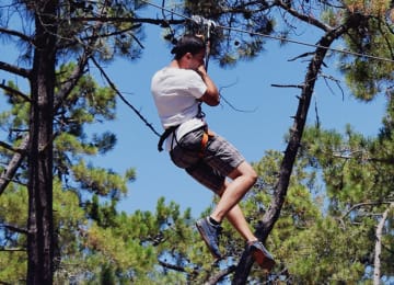Fazer escalada em árvores parece-te um mega plano? No Adventure Park Jamor podes aventurar-te numa floresta densa e passear nas copas das árvores a 12 metros de altura, cruzando pontes de corda, túneis suspensos e deslizando em slides de 200 metros. São cerca de 90 minutos de adrenalina e emoções fortes! Podemos chamar-te Tarzan?