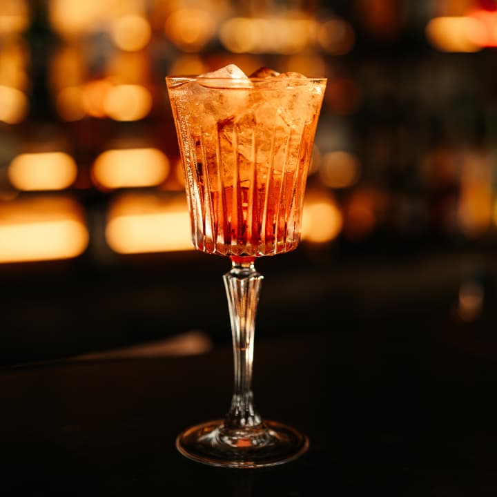 A glass of pink cava (sparkling wine)