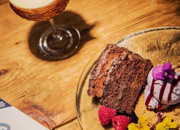 - Brownie de chocolate con nueces y helado de galleta