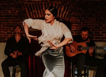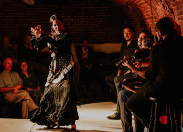 ¡Vive su esencia! 6 artistas sobre el tablao: un bailaor, una bailaora, un cantaor, una guitarra, un cajón, un violín... ¡y tú sintiendo las emociones de este arte en estado puro! A pocos metros de la Puerta del Sol te espera un espectáculo en directo que te lleva directo hasta los orígenes del flamenco. Desde sus comienzos se ha desarrollado en la intimidad, en las cuevas de ladrillo por su magnífica sonoridad. Este es el espectáculo auténtico y genuino que tendrás la suerte de contemplar.