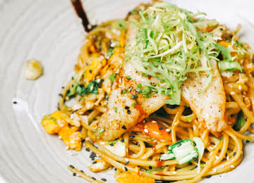 - Filete de robalinho corado, arroz de tomate e coentros