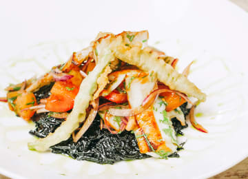- Poke de salmão fresco, com rúcula e edamame