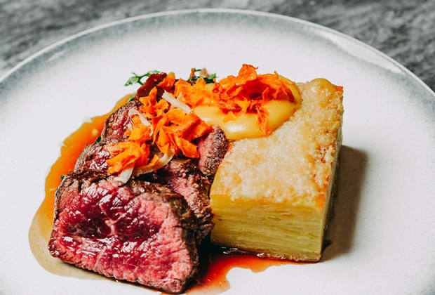 - Barriga de Leitão crocante com puré de batata trufado