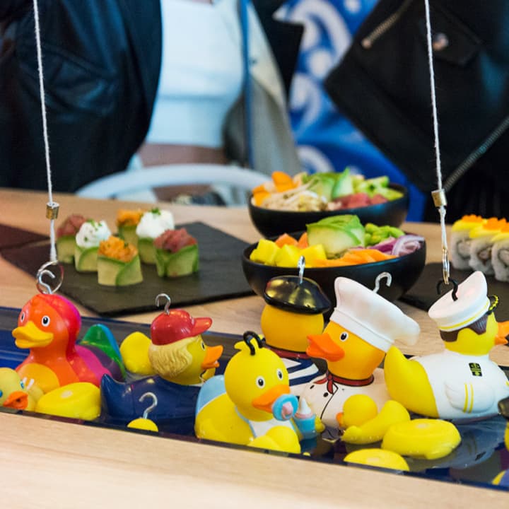 Cócteles hawaianos y patitos de goma en True Sushi