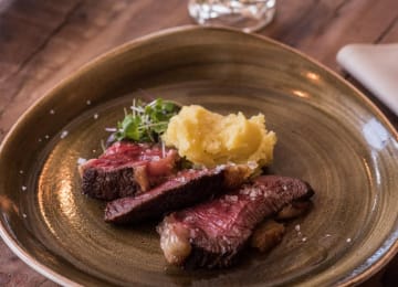 - Lomo de vaca con terrina de patata y huerto de mini verduras