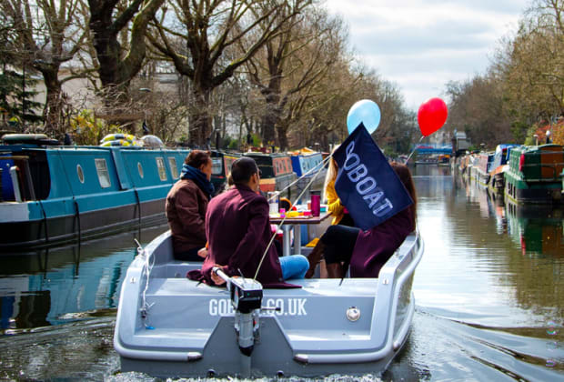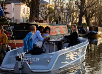 GoBoat es una divertida experiencia de navegación autodirigida que te encantará Tú eres el capitán, tú eliges la ruta. Eligiendo entre la verde tranquilidad de Kingston o los muelles de Canary Wharf, tu GoBoat tendrá acceso a un impresionante tramo de la variada red de canales de Londres. No es necesario tener experiencia en navegación, ya que se impartirá formación a la llegada y se te dará un mapa de ruta para ayudarte a orientarte. Los perros también son bienvenidos a bordo. Prepara un picnic para picar a bordo y ¡a navegar!