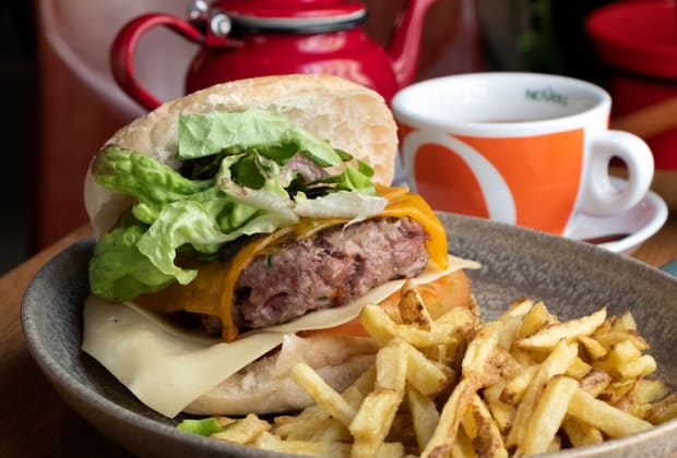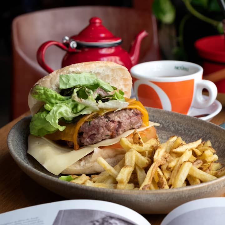 • Burger clásica con patatas fritas