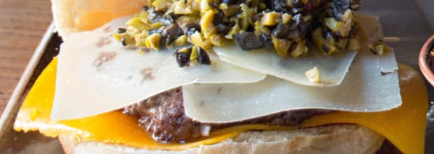 • La hamburguesa más sana del mundo con berenjenas fritas, cebolla y lombarda