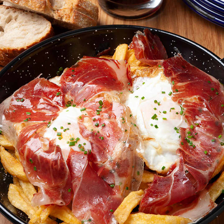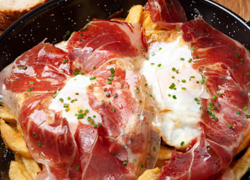 - Huevos rotos con jamón ibérico