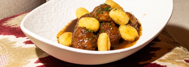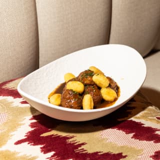 - Iberian beef and ham meatballs stewed and crunchy gnocchi