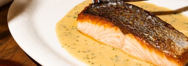 - Braised salmon with fine herb sauce