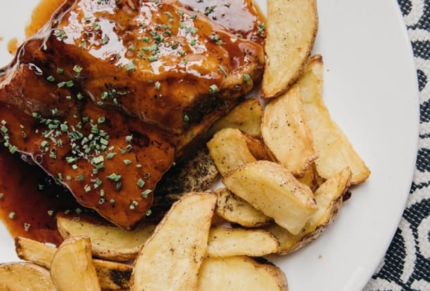 - Salmón braseado y salsa de finas hierbas