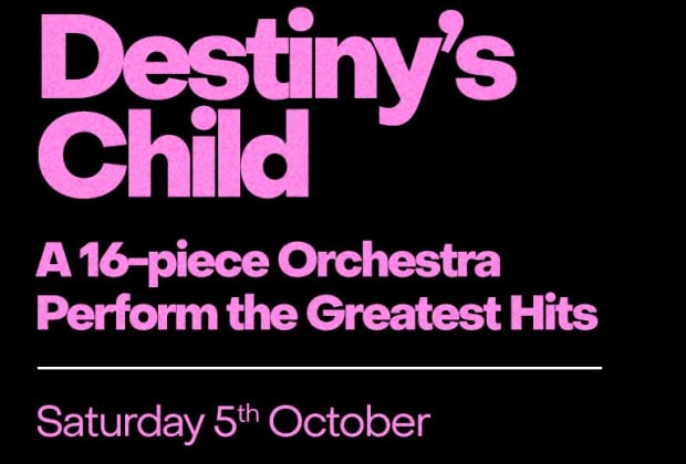 Ever wondered what Destiny's Childβs greatest hits would sound like with a 16-piece orchestra? Nowβs your chance to listen to all your favourite songs from Bills Bills Bills to Say My Name to Survivor. Donβt miss this unique opportunity to listen to all their hits live in a unique orchestral reimagining with bold live visuals, confetti and a jaw-dropping light show!