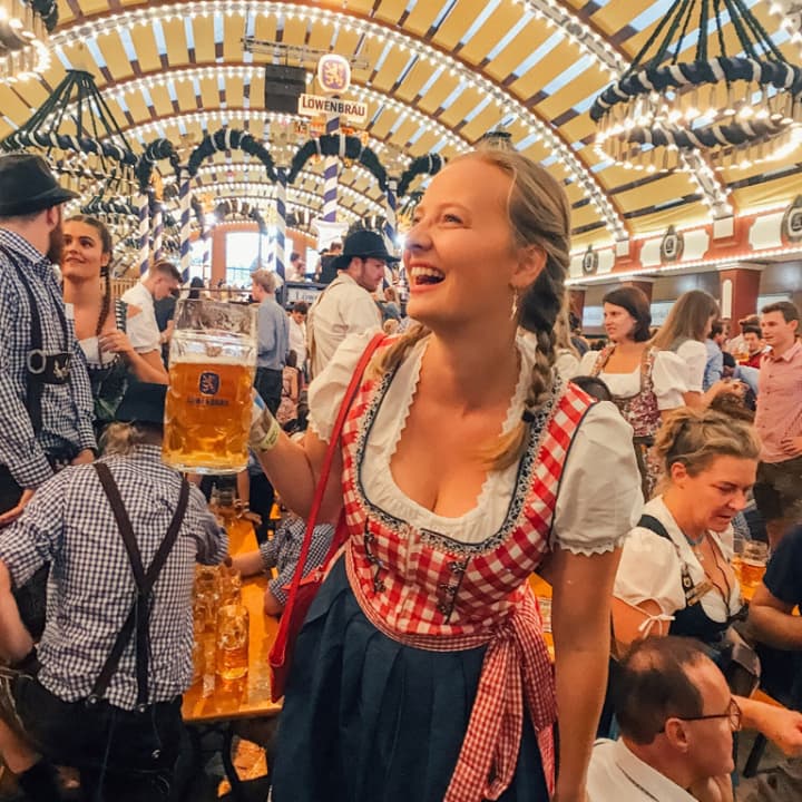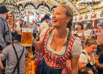 🎫 Ultimate Oktoberfest Experience com 4 noites de alojamento no campismo. Inclui pequeno-almoço, almoço e jantar, guias para ir aos salões de cerveja Oktoberfest em transporte público, after party no campismo com concertos e DJ, jogos, atividades, passeios de bicicleta pelo centro de Munique até um dos maiores jardins de cerveja do mundo e 10% de desconto nos trajes do Oktoberfest