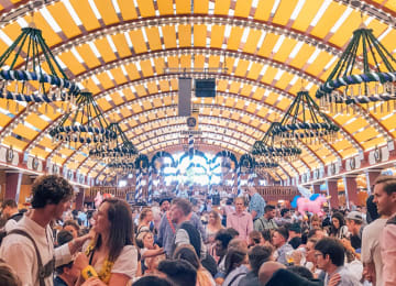 🎫 Noite de alojamento no campismo com pequeno-almoço e jantar, guias para os salões de cerveja Oktoberfest em transporte público e after party no campismo com concertos e DJ