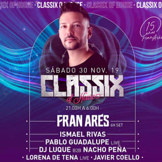 ¡La reunión más importante para los amantes de la música House vuelve a LAB Madrid! Y lo hace con más fuerza y horas que nunca después del éxito rotundo y el aforo completo de la última reunión el pasado mes de abril. En esta ocasión, la cita se vuelve más especial aún por la celebración de Fran Arés por sus 15 años de trayectoria. ¡No te lo pienses más y disfruta de una noche inolvidable!