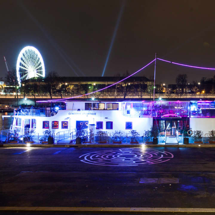 Féerie, magie et enchantement : embarquement à bord du plus gros bateau club de Paris, le célèbre bateau du Concorde Atlantique ce mardi 31 décembre. Le Concorde Atlantique, c'est un cadre prestigieux et historique au pied de l'Assemblée Nationale et du musée d'Orsay, avec une vue imprenable sur la Concorde, le Louvre, les Quais, le Grand Palais, le jardin des Tuileries, le musée de l'Orangerie et le Pont Alexandre III. Un espace de plus de 800m2 sur 3 niveaux (deux salles club et une géante terrasse couverte) t'attend. Voici un réveillon à bord du plus gros club flottant sur l'eau ! La situation exceptionnelle de ce palace flottant offre une vue à couper le souffle, dont tu pourras admirer les illuminations tout au long de la nuit. C'est le lieu idéal pour démarrer l'année !