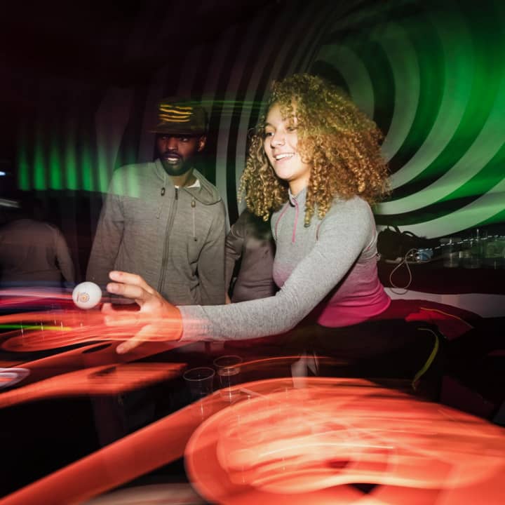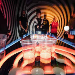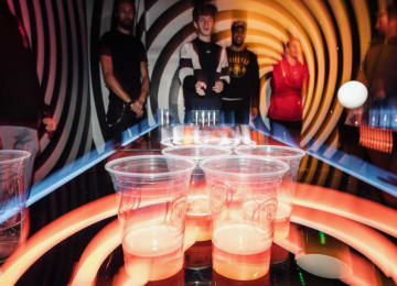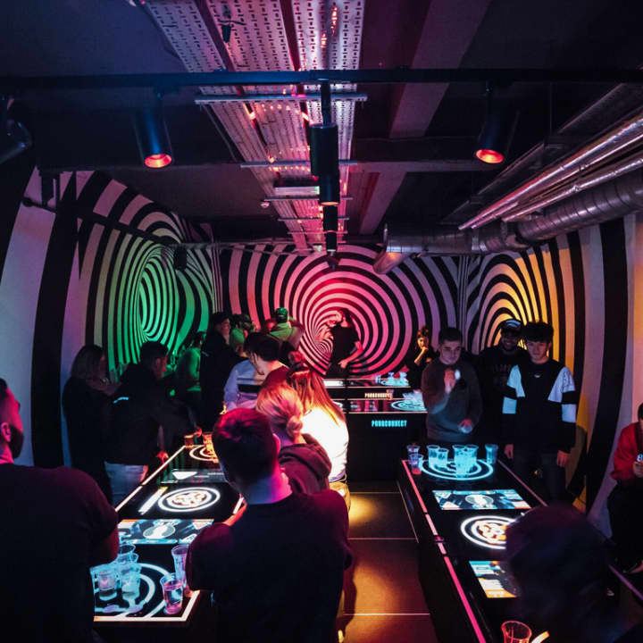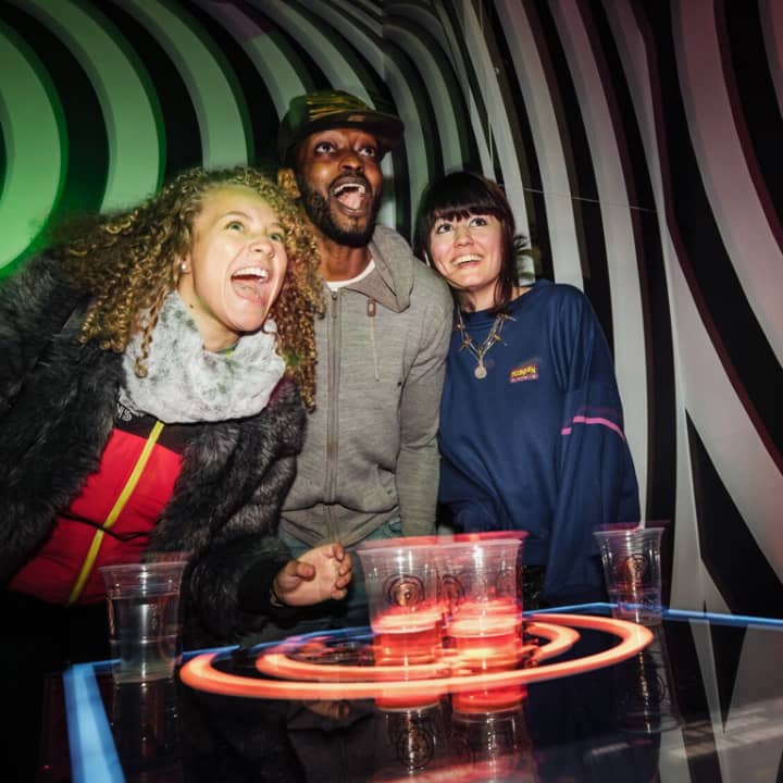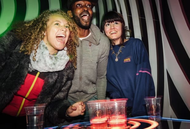 Queens has dragged traditional beer pong into the modern age to make it bigger and better! It may be unrecognizable with its new neon look, but don't worry, it's still about getting balls into cups. However, calling it 'beer' pong may not be entirely accurate anymore, because nowadays you can choose to use cocktails or prosecco instead (you can still stick to good ol' beer, of course). Pick your poison and get playing in West London's totally trippy 'pong zone!